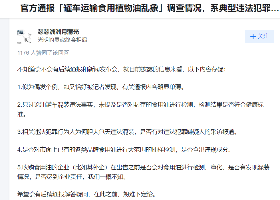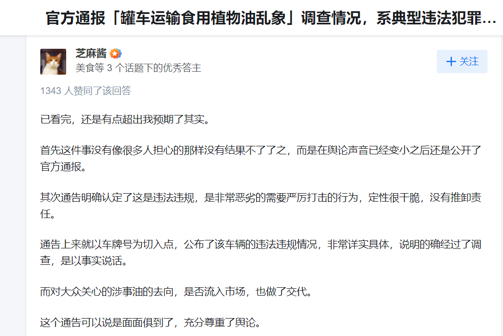 所以,食用油混裝這個事兒,雖然有了初步結論,但當時網上各種沸沸揚揚的討論,值得再回顧一下,看看某些人,天天都是用什麼思維,來看待這種公共突發輿情事件