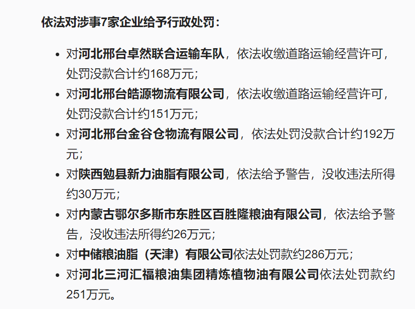 中儲糧天津這個公司罰款最高,調查結果沒有提到金龍魚任何問題。
