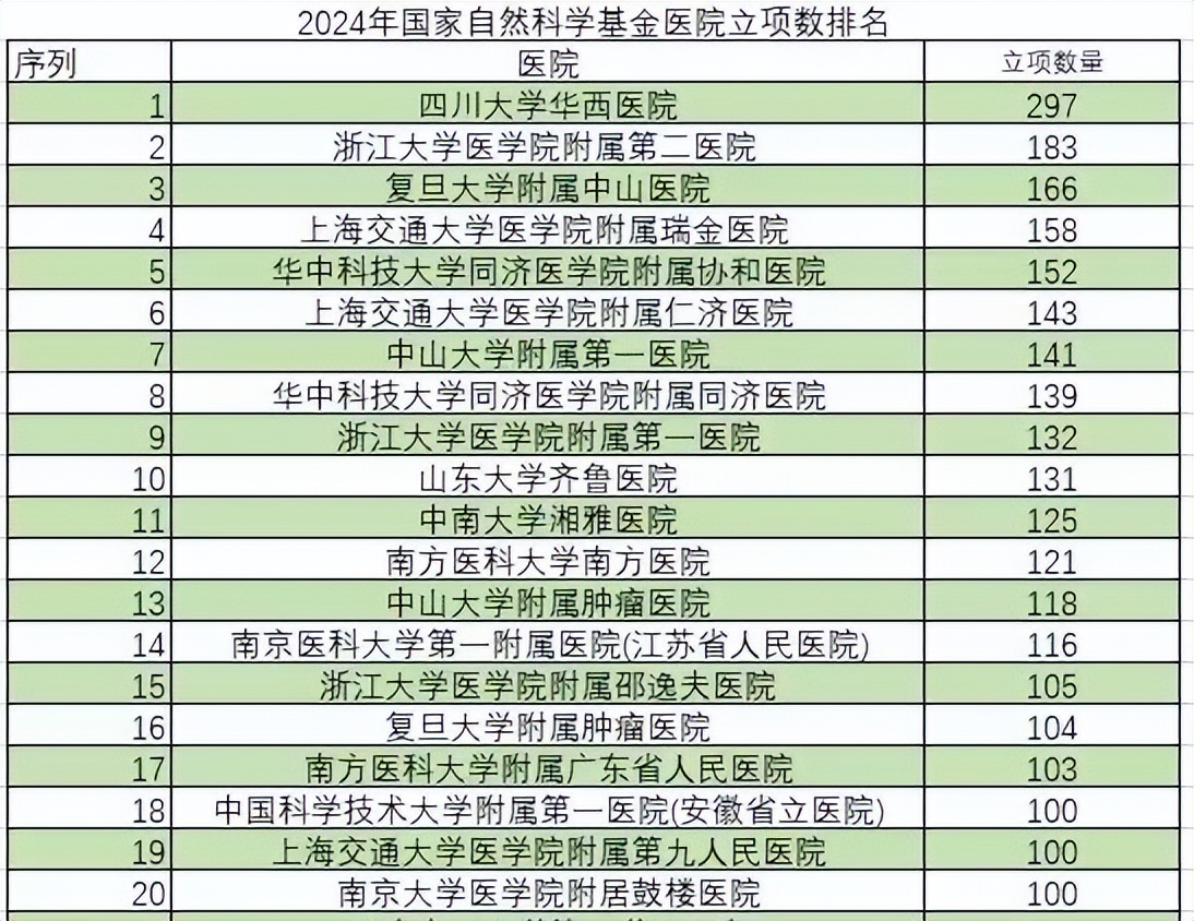 像實力排名第3的中國人民解放軍總醫院(301醫院)、排名第11的北京大學第一醫院、排名第12的北京大學第三醫院,“國自然”立項數也不在前20之列。