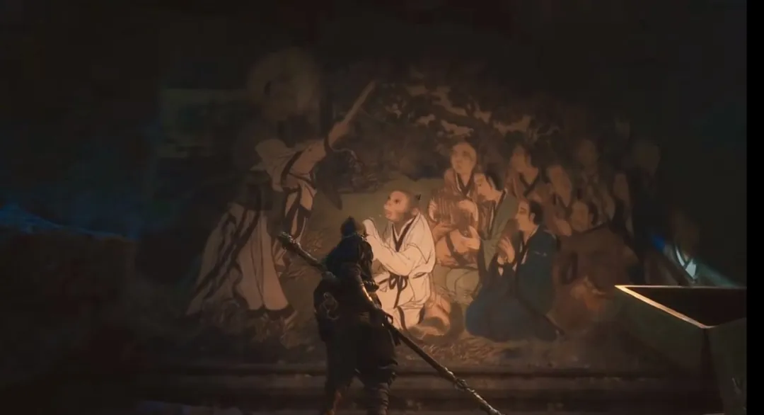 《黑神話:悟空》裏有天命人走到一處壁畫前駐足的場景,壁畫內容是菩提祖師教悟空法術。終於明白小説裏的反派為什麼有時候會愣神被主角反殺了,因為這個壁畫確實讓人屍體暖暖的。即便天命人已經沒了悟空的前世記憶,可玩家還是會在此處感受到古典神魔小説所謂的因果前定。