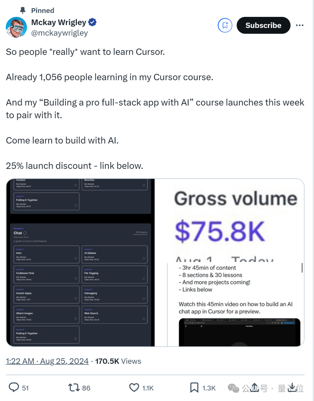 由於圍觀者甚眾,小哥後來還直接現場開班教學,上千人報名了他的Cursor課程。