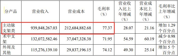 具體來看,2023年心脈醫療的主動脈支架類產品實現9.40億元營收,佔總營收的79.17%,是公司收入來源的大頭。