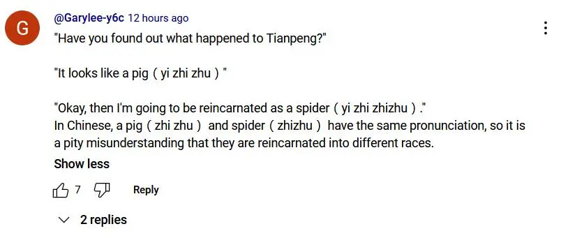不瞭解拼音,老外玩家便get不到許多歡樂。看華人玩家在評論區費勁科普蜘蛛夫人投錯胎是因為聽説八戒也是“只豬”的諧音梗,老外玩家還是一臉的丈二和尚摸不着頭腦。