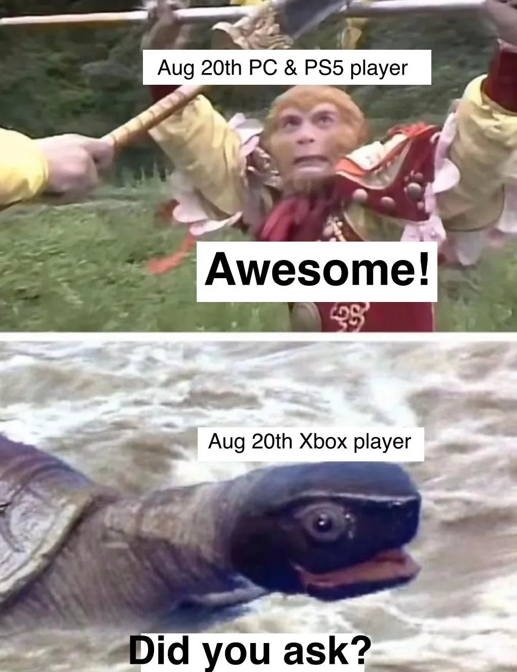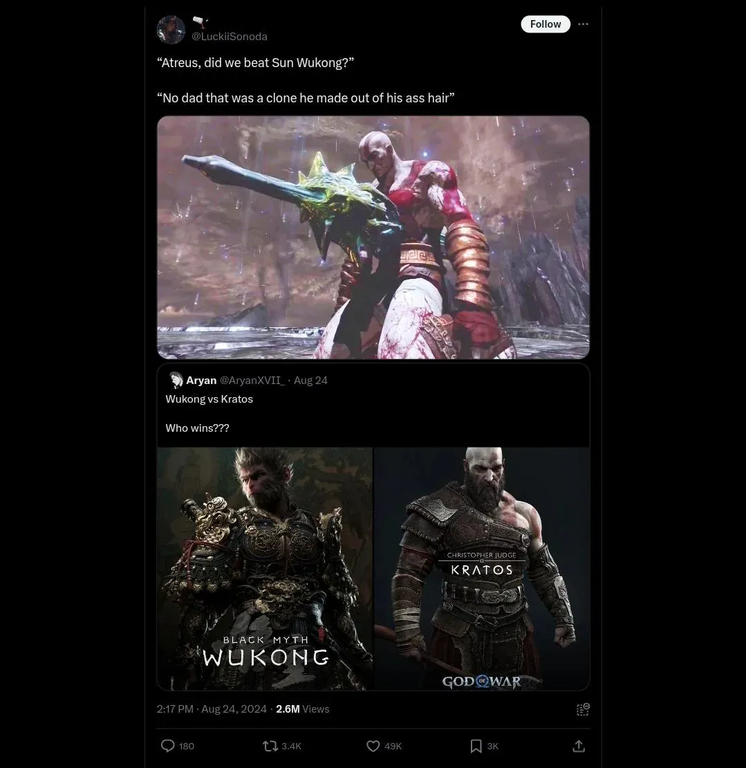 而這兩天最新的梗圖要屬老外玩家開始對比起《悟空》和《戰神》的戰力了。
