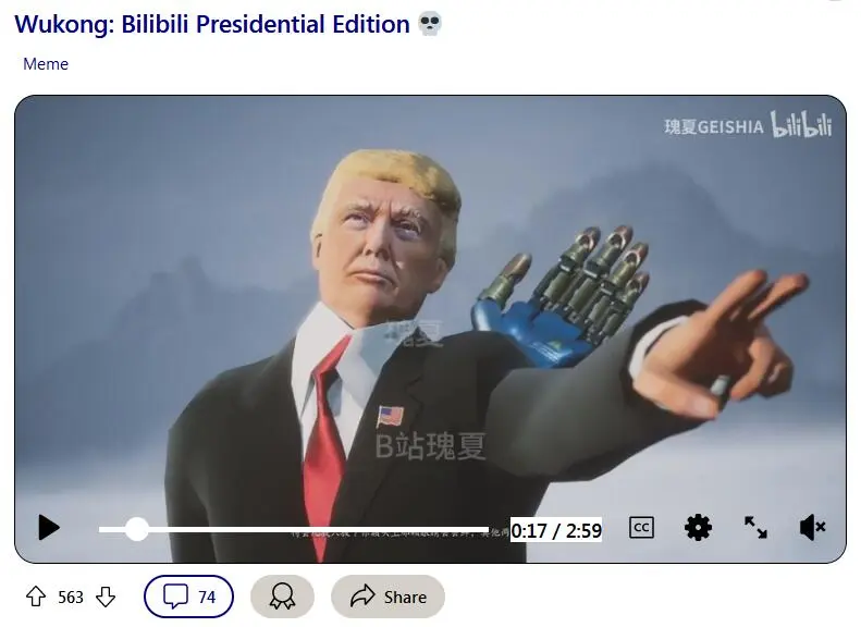 《悟空》從一開始就不是一部為迎合西方品味而生的產品,所以它的創作也沒有受到太多西方輿論的影響。而這種自由氣息也成為遊戲吸引海外玩家的特質之一,很快產出梗來。