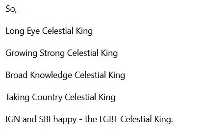 更有大神腦洞大開,驚訝地發現天庭四大天王的英文名,其首字母組合居然是LGBT。這誰懂啊!遊戲居然還埋了齊天大聖大戰LGBT的梗!雖然這有點過度解讀,但這些解讀讓遊戲社區充滿了快樂的氣氛。