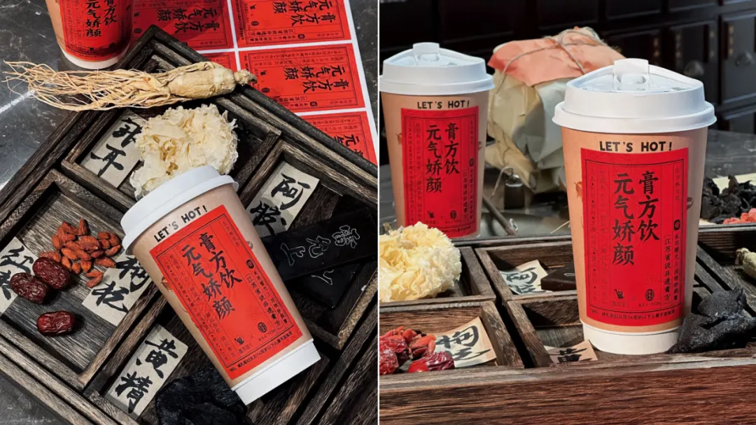 去年幸運咖推出枸杞美式、紅棗拿鐵,話題性十足,引發大量消費者打卡;百分茶聯合雷允上推出元氣嬌顏膏方飲;其子品牌拾柴手作,將糯米、豆漿、鮮牛乳與山藥搭配製成的雲錦美齡粥,成為南京飲品“頂流”。