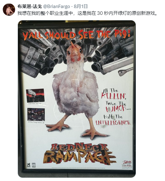 聊到《農夫也瘋狂》,布萊恩會想起自己30秒內就為這款遊戲的發行“開了綠燈”,毫不掩飾對它幽默的風格和超前的創意的讚美。