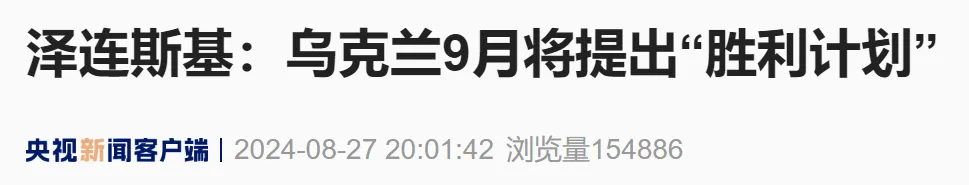 就在昨天,據央視新聞客户端報道,烏克蘭總統澤連斯基當天在基輔舉行的烏克蘭獨立論壇上表示,烏軍在庫爾斯克地區的行動是烏克蘭“勝利計劃”的要點之一,9月烏克蘭將向美國提出烏克蘭的“勝利計劃”。