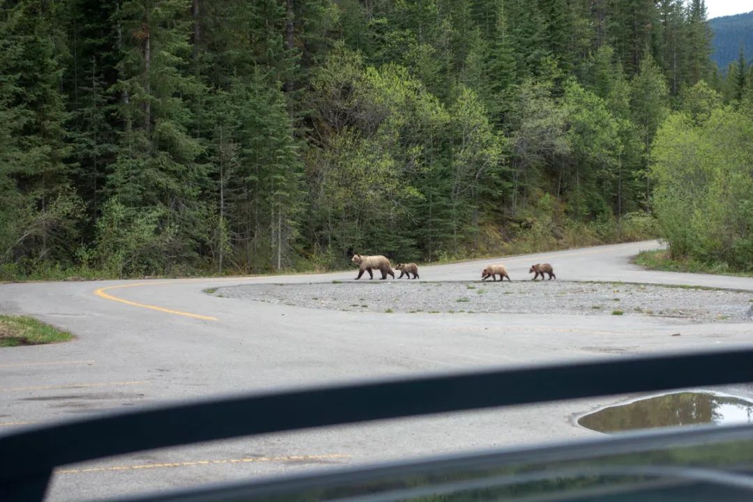 加拿大,灰熊一家穿越公路 圖片來源:Alan Covington / inaturalist