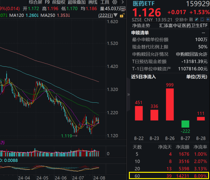 截至8月28日,生物藥ETF(159839)和醫藥ETF(159929)過去5天均有4天獲資金淨流入。近10日、20日、60日也均呈資金淨流入態勢,生物藥ETF(159839)近20日獲資金加倉超4600萬元,醫藥ETF(159929)近60日獲資金加倉超1.4億元!(來源:wind)