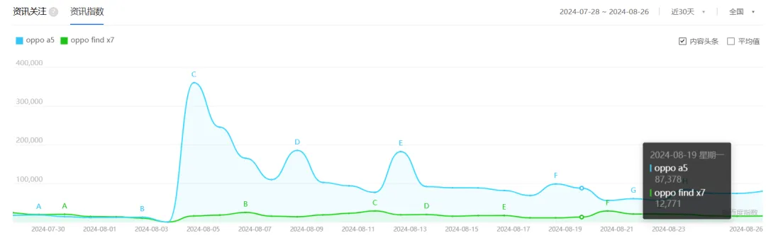 OPPO A5的討論熱度高於OPPO Find X7