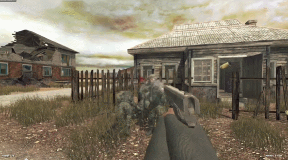 隨後,一隊俄羅斯士兵便衝向了玩家,並排站好,同時對玩家開槍射擊!此時,玩家就要用手中的手槍,將這些俄軍士兵挨個消滅。