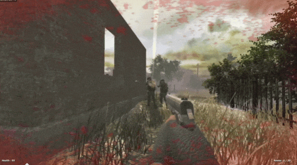 在遊戲一開始,玩家將會出生在一個不明位置的村莊裏,只有一把手槍和匕首作為武器。從遊戲模型上看,玩家使用的是一支M1911手槍,但彈匣容量並不是現實裏的7發,而是變成了10發。