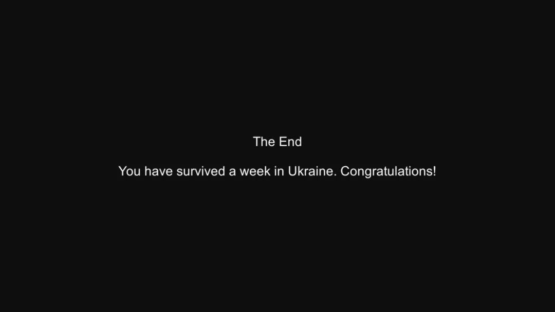《光榮屬於烏克蘭》的關卡一共有7關,分別是一週七天,通關全流程的時間還不到一個小時。玩家只要通關全部7關,就會看到一句話:祝賀你在烏克蘭活過了一週!玩到這,軍武菌都不知道,自己扮演的究竟是被捲入戰爭的老百姓,還是被抓去填線的壯丁,遊戲就已經戛然而止了。