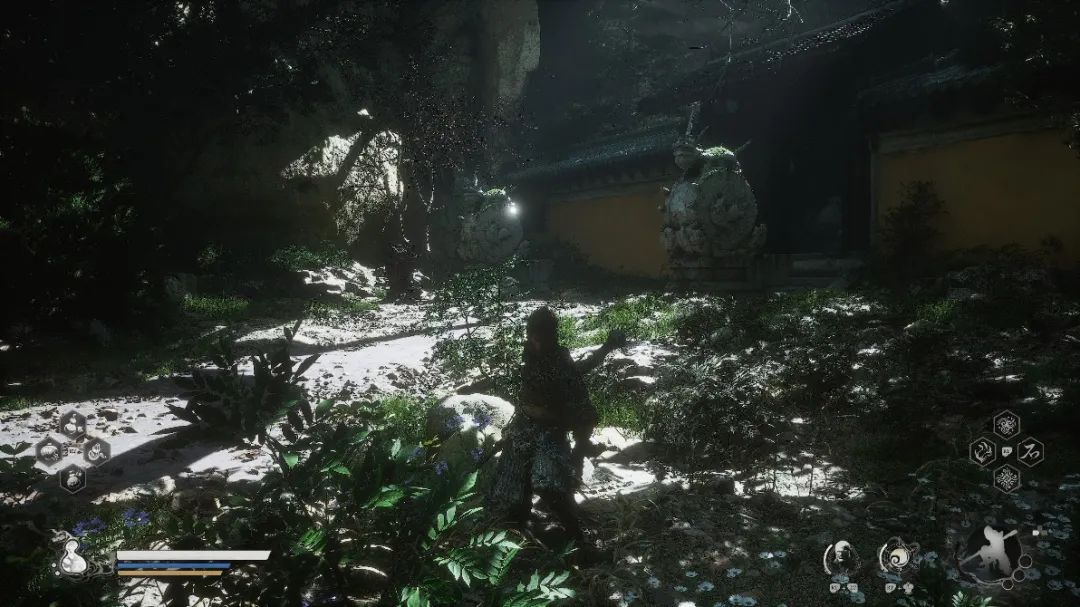 但如果追求視覺引導的自洽,那麼場景就會趨於閉合,會出現很多天然的障礙,容易讓視覺變得逼仄起來。如何讓場景既在物理上閉合,又在視覺上不顯得逼仄,是一門大學問。這方面遊戲科學的經驗應該是遠遠不足的,同時也割捨不掉自己掃來的高精度素材,見縫插針地往場景裏塞,就容易呈現出一個比較失衡的樣子。