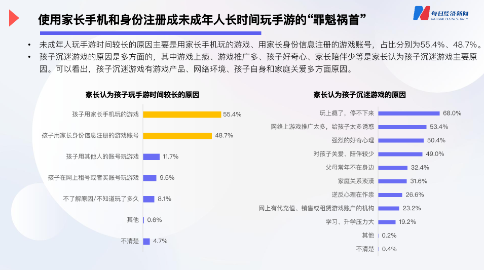 **在新政落地三週年之際,《每日經濟新聞》通過對遊戲廠商平台官網信息、市場公開信息、以及2499個家庭樣本進行調研,發佈了《未成年人遊戲防沉迷現狀調研報告(2024)》。**從這一報告中,我們可以一窺“最嚴防沉迷政策”實施三年來的實際效果。