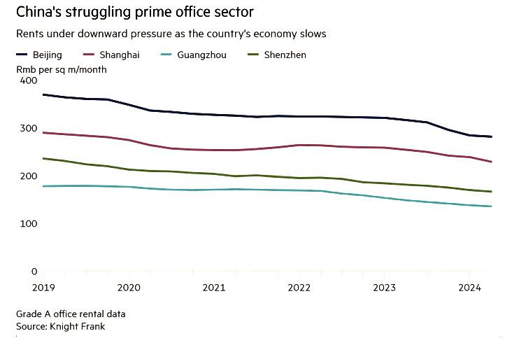 3. 外媒極為強調中國一些可用於唱衰的經濟數據,如房價、寫字樓租金、股指,能找出不少陷入困境的企業與行業,如房地產、光伏。唱衰節奏和以前不太一樣,以前找不到這麼多下降的數據,一般只是某個孤立數據唱幾下就換了。現在是多種數據一起復合唱衰,有一些過去看好中國經濟的投資人、經濟學者都判斷,中國經濟這次是真有大麻煩了,寫文章分析問題。這次唱衰攻擊在印象中是力度較大的,維持時間是最長的一次了。