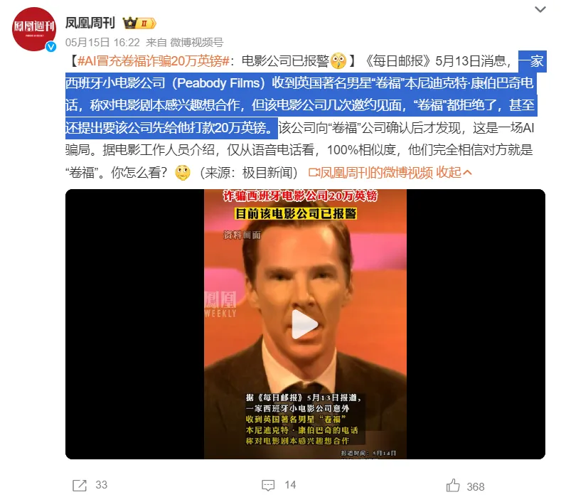 現在又有了AI在視頻方面的輔助,騙子更是如魚得水,讓人防不勝防。