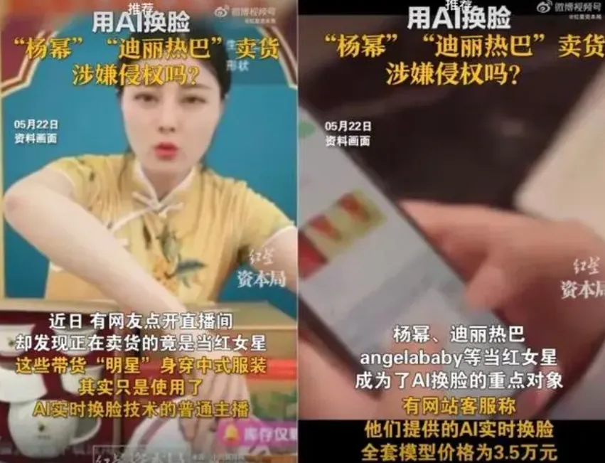 現在某些直播間,開始用AI換臉明星搞帶貨。