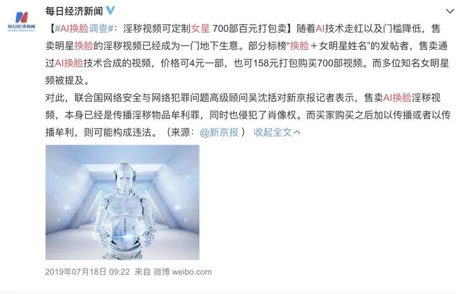 有人收錢定製這些女明星的換臉淫穢視頻牟利。