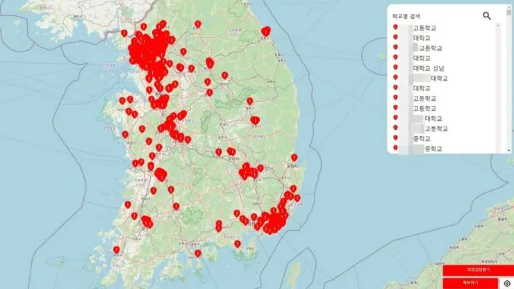 ● 這張“深度偽造地圖”的圖片顯示,韓國數百所學校據稱受到深度偽造犯罪的影響