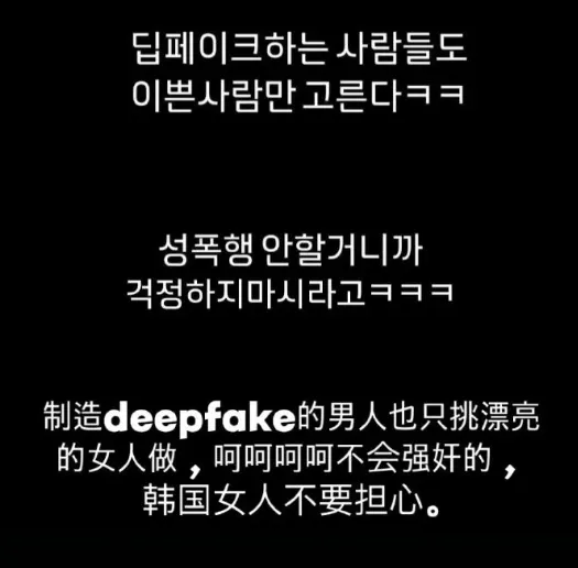 她提到,“韓國現在的情況太嚴重了, 無法預測多少女性因為deep fake受害。”