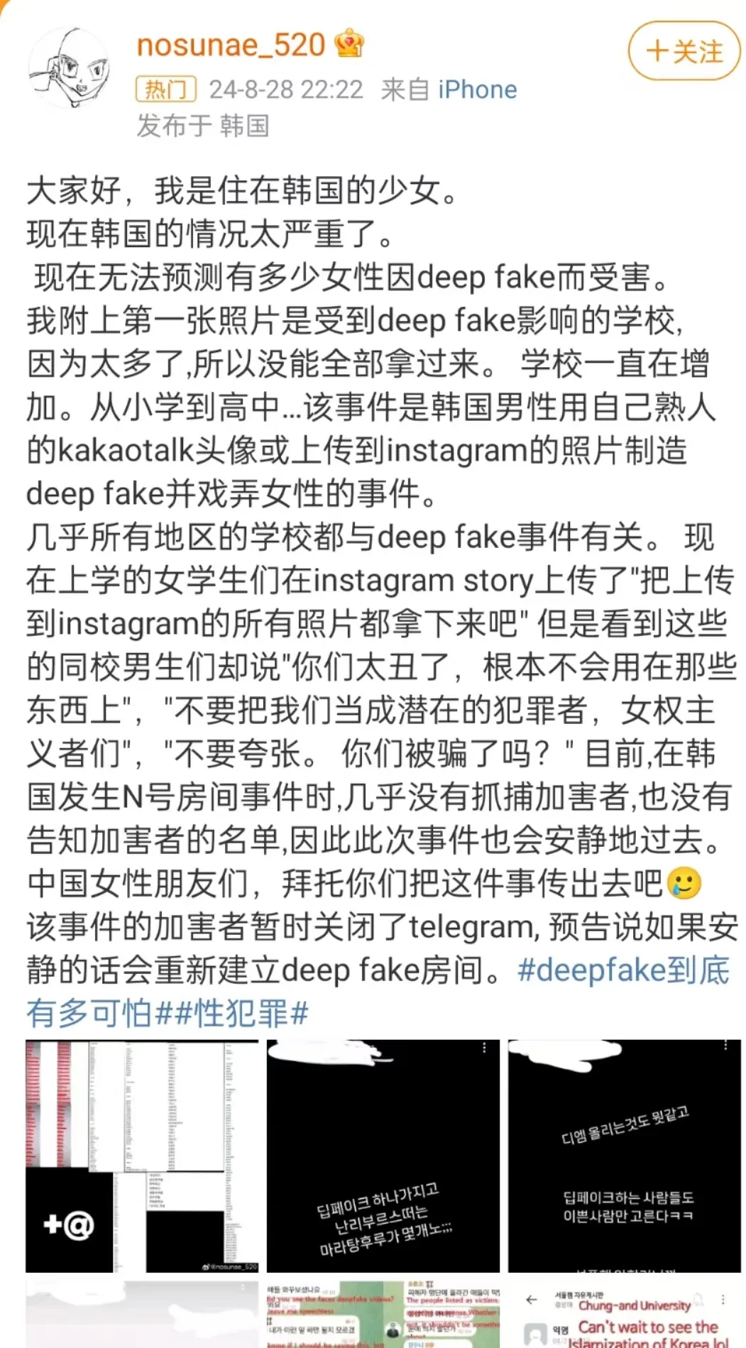 只要你是女性、在網絡上公開過照片,就很有可能受害,逼得韓國大部分女學生把ins賬號都改成了非公開,刪除所有相關信息。
