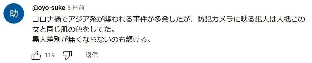 因為新冠疫情,多次發生亞裔遭遇襲擊事件。監控拍到的犯人,大多和這個女的一個膚色。