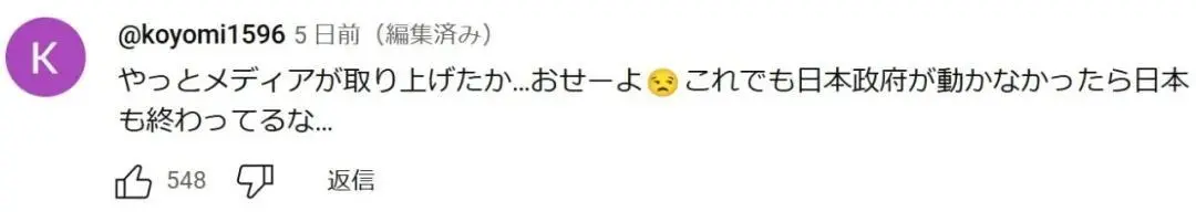 媒體總算報道了……太晚了。都這樣了,日本政府要是還沒動作,日本也就完了……