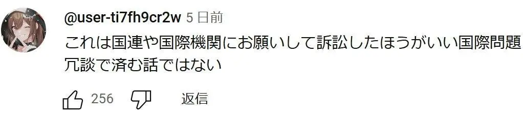 這是拜託聯合國和國際機構,應該訴訟的國際問題。不是當作玩笑就結了的事。