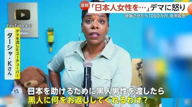 不過黑大姐可沒打算跟日本人道歉。她堅稱,黑人男能夠立刻解決日本的人口少問題,這是事實。