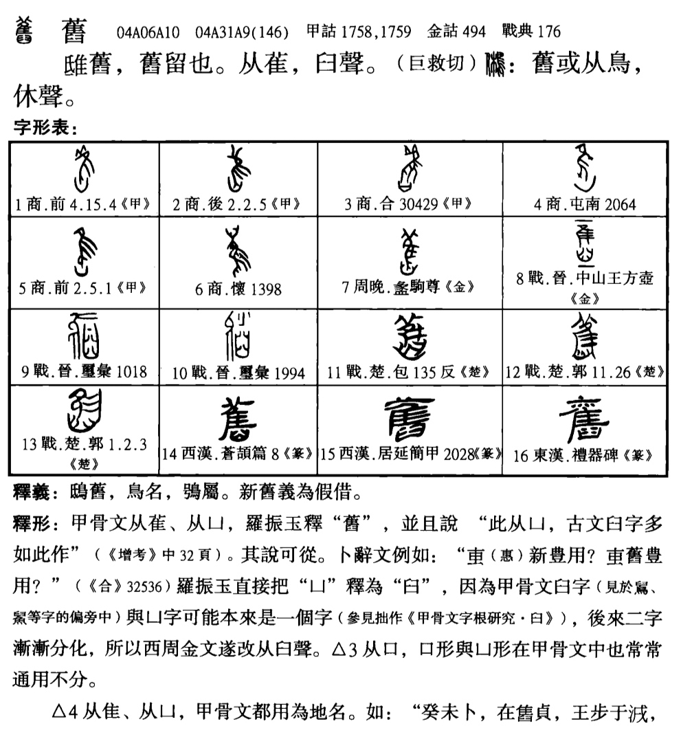 甲骨文【僱(户隹)、舊(雈凵、隹臼)、巂雋雋(雚丙、雚冏)】詞例: