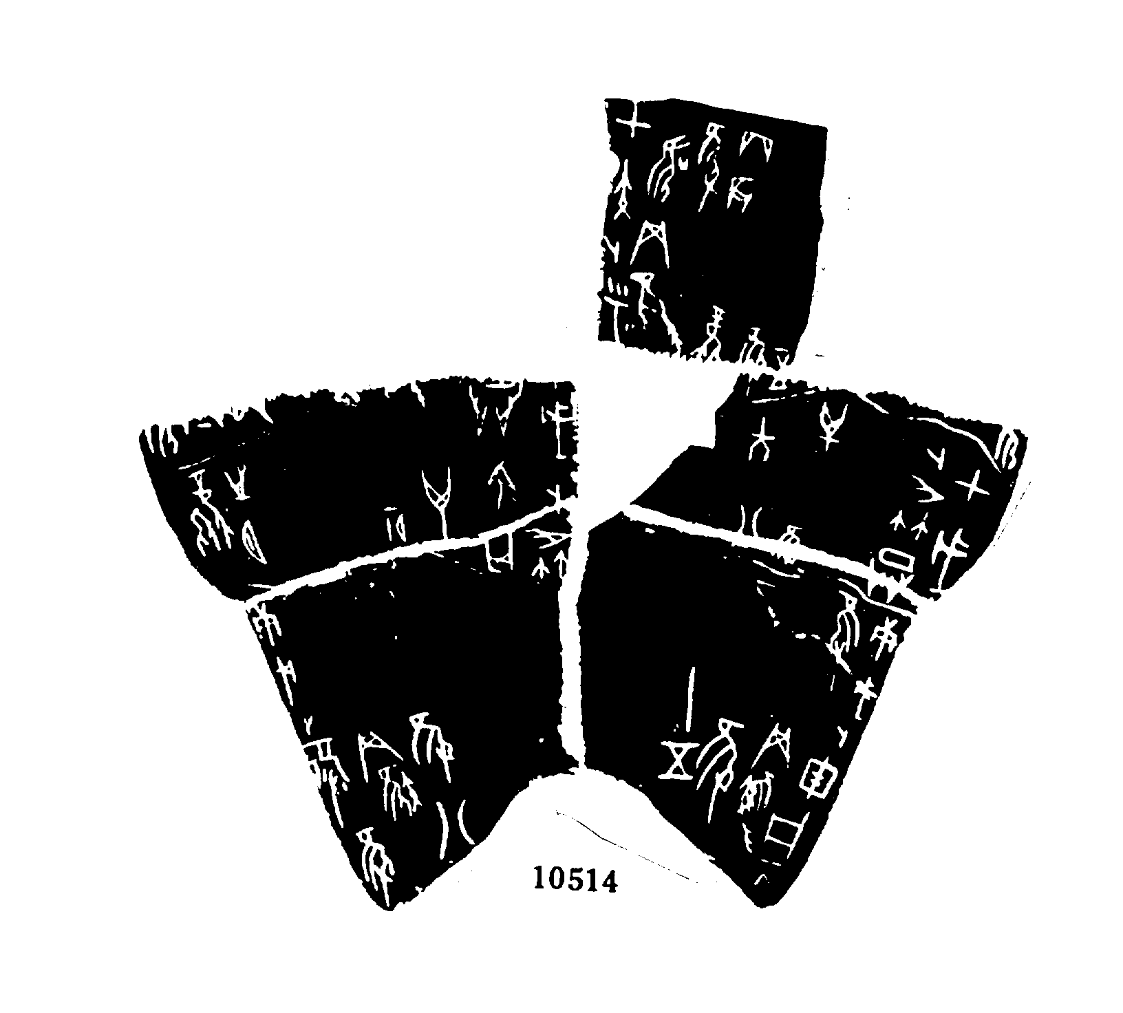 合集 10514 庚戌卜:盾隻(獲)網雉。隻(獲)十五。 一 2 庚戌卜:罙隻(獲)網雉。隻(獲)八。 一 3 甲寅卜:乎(呼)鳴網鳥,隻(獲)。丙辰風,隻(獲)五。 一 4 …鳥…■。 5 甲戌卜,※:圍,。隻(獲)六十八。 6 甲戌卜,※:圍,不其。十一月。之夕風。 師賓間
