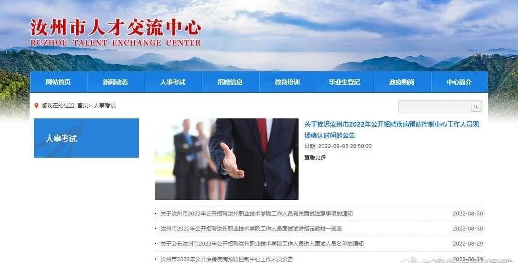 2022年8月29日,汝州人才交流中心官網據《汝州市2022年公開招聘疾病預防控制中心工作人員實施方案》(汝政辦(2022)59號)公開招錄50人。