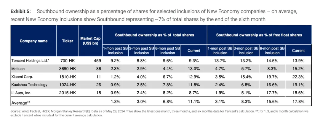 此前大摩按照騰訊、美團等已入港股通的公司推算,阿里若入港股通,長期“南向資金”持股比例可在10%以上。