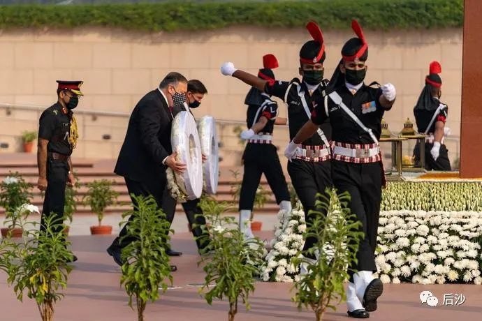 10月,美國國務卿蓬佩奧與國防部長埃斯珀訪問印度,兩人抱着花圈,給在加勒萬河谷衝突中死亡的20名印軍士兵上墳。