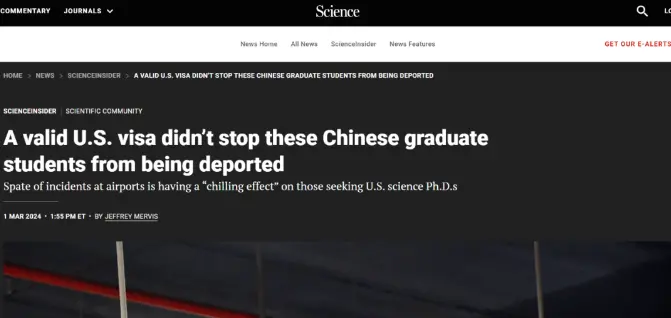 《科學》雜誌對此表示擔心,政治對學術的影響將會造成寒蟬效應,會讓中國學生認為為了獲得美國高等教育要付出如此巨大的代價。