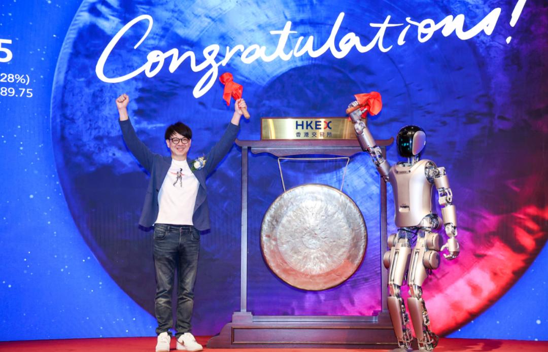 在當天舉行的上市儀式現場,優必選旗下的熊貓機器人“優悠”穩步走上舞台,向創始人周劍遞上鑼錘。而隨後亮相的工業版人形機器人Walker S,則攜手周劍一起敲響了上市的鐘聲,藉此創造了人類歷史上第一次由人形機器人敲鑼上市的歷史性時刻。