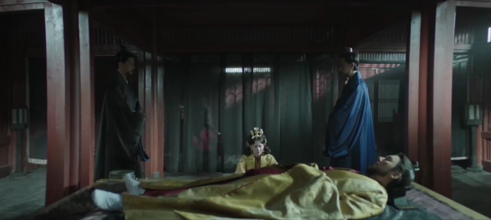 丈夫死了,王后的心情是非常複雜的,絕望但是不能死,還是要拖着身體完成家族和王權過渡的使命。