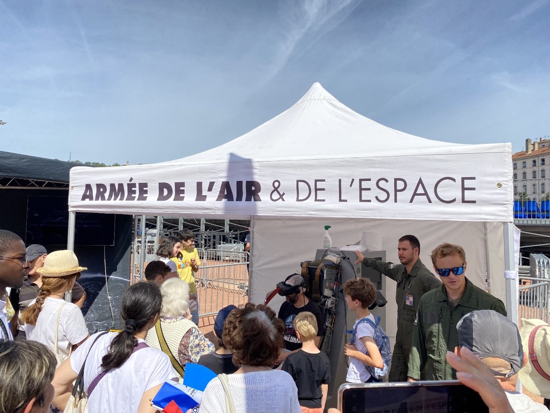 與法國陸軍不同,海軍和空軍的裝備顯然沒法拉過來作地面展示,但兩者的宣傳帳篷前同樣熱鬧。