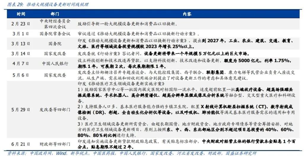 7月25日,國家發改委、財政部印發《關於加力支持大規模設備更新和消費品以舊換新的若干措施》的通知,提出“統籌安排3000億元左右超長期特別國債資金,加力支持大規模設備更新和消費品以舊換新”。此政策是3月份方案的進一步延續,醫療領域的智能化被重點提及。