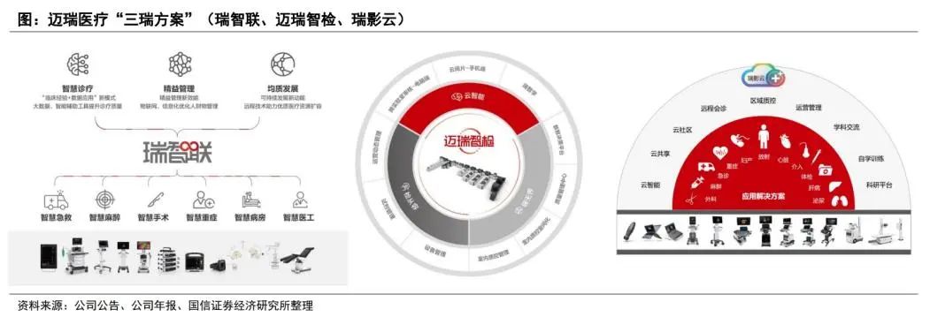 目前,邁瑞醫療的數智化整體解決方案已在國內外高端客户羣中積累了大量的成熟案例,助力公司“設備+IT+AI”的智能醫療生態系統持續進化,打造了公司獨一無二的競爭優勢。據公司統計,“三瑞”數智化方案過去三年實現的累計銷售額、以及帶動的設備銷售額共計約45億元。