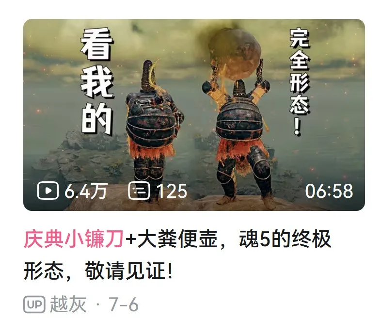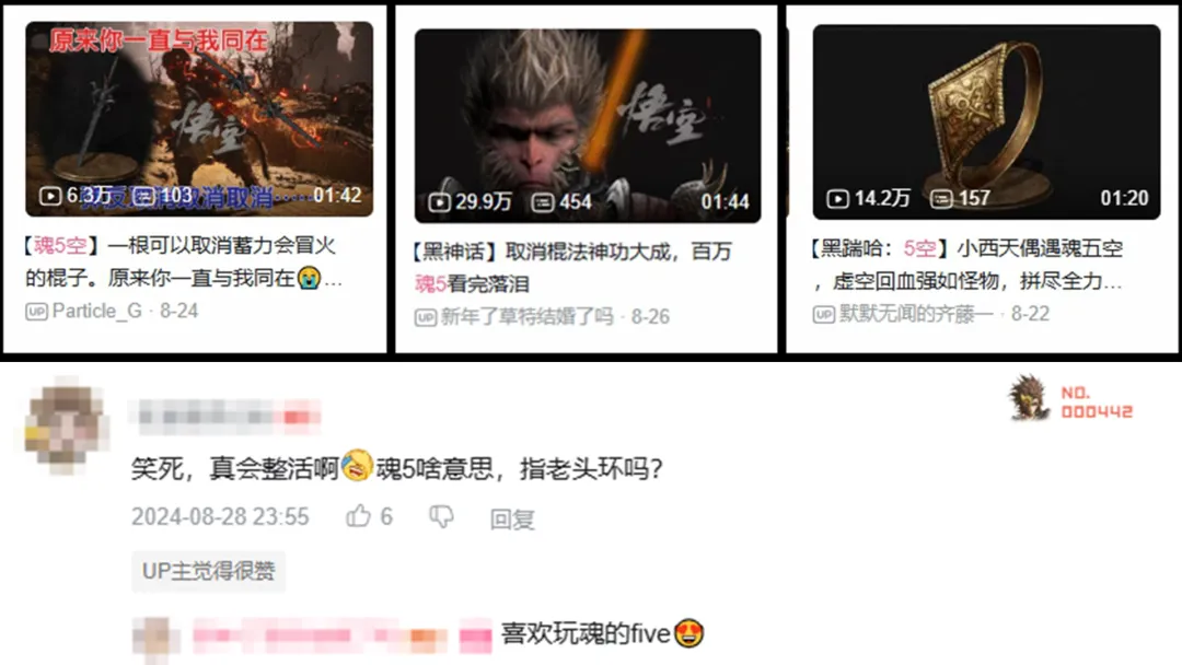 雖然活整得挺好,然而這類視頻從標題到評論區全是什麼“魂5空”“並非大聖”“原來你一直與我同在😭😭”之類叫人半懂不懂的話,着實令路過的玩家摸不着頭腦。
