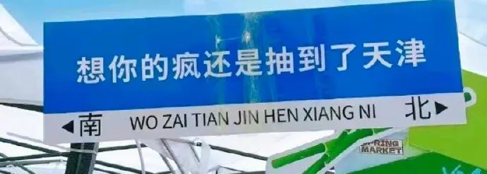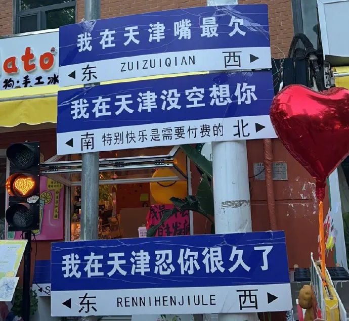 網紅標牌“想你的風”確實也來了天津衞,只不過一下子就變體出了一股淡淡的瘋感。