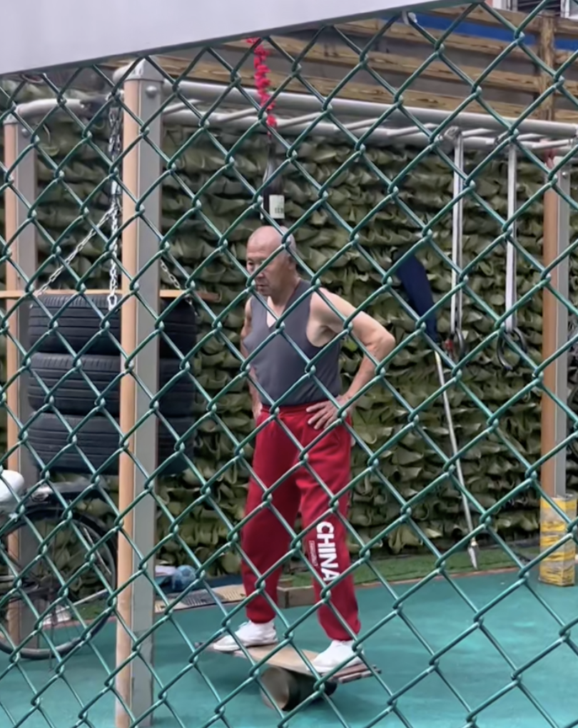 還有沒苦硬吃,非要穿自制的500公斤的鐵鞋走路,那是鉚足了勁兒挪不了5釐米,大爺非説每天練半小時對腰好。