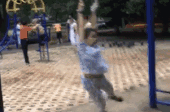 單槓大轉盤的掰掰特得意,別人不敢做因為怕扯着蛋,掰掰不怕呀“都不用了,要介玩意兒幹嘛”。