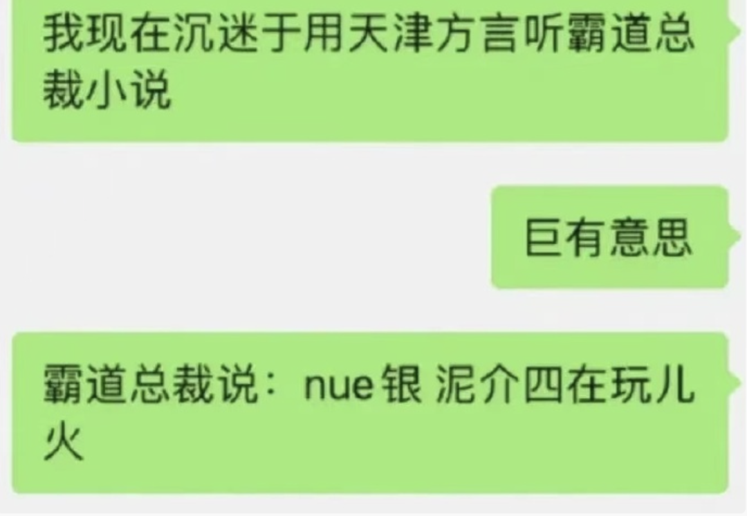 於是乎,連天津話也自帶幽默基因,有人曾把霸總文學翻譯成天津話,那酸爽,包治戀愛腦。