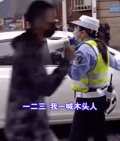 路上的交警小姐姐也是相聲十級科班出身,指揮交通是“相聲執法”:我喊一二三木頭人,咱就不能動了啊。