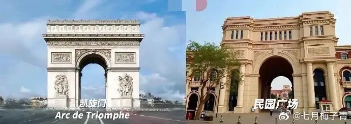 巴黎聖母院翻譯過來其實就是娘娘廟;凱旋門跟民園廣場完全一個模子刻出來的。